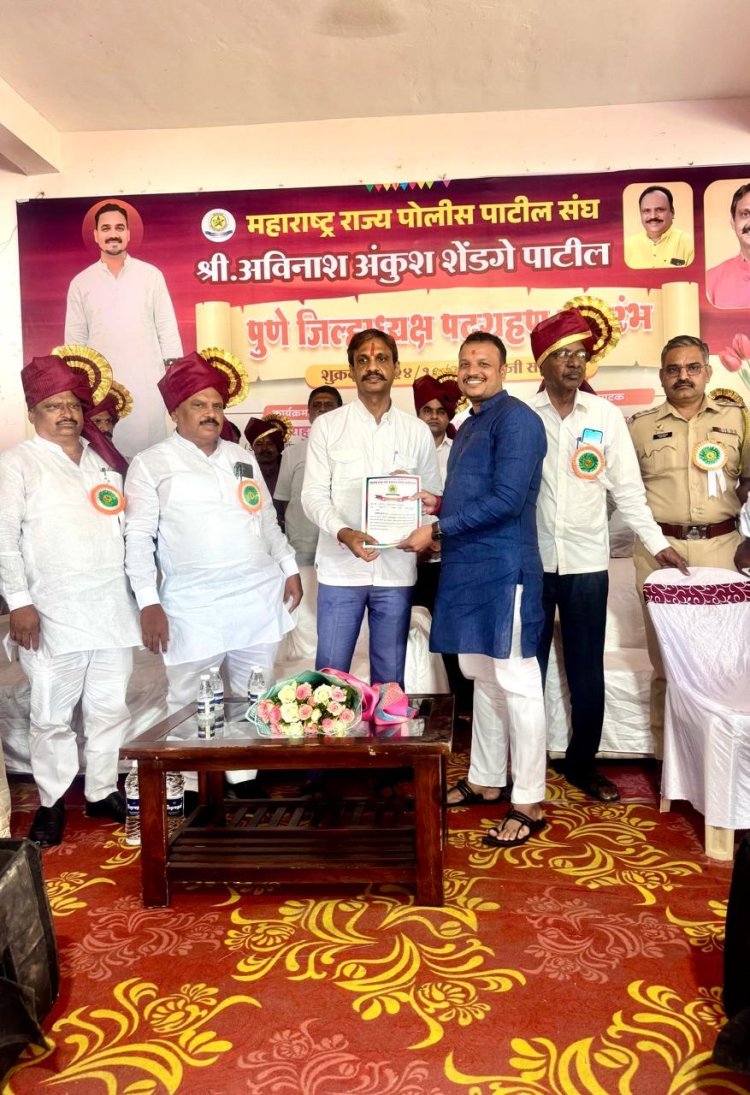 यावेळी महाराष्ट्र राज्य विधिमंडळ उपक्रम समितीचे अध्यक्ष व दौंड विधानसभेचे आमदार राहुलदादा कुल व महाराष्ट्र राज्य पोलीस पाटील संघटनेचे अध्यक्ष बाळासाहेब शिंदे पाटील यांच्या हस्ते हि नियुक्ती करण्यात आली.या कार्यक्रमाला राज्य उपाध्यक्ष लक्ष्मण शितोळे, राज्य खजिनदार निळकंठ थोरात, पश्चिम विभागीय अध्यक्ष साहेबराव राळे, उपाध्यक्ष गोरख नवले पाटील, पश्चिम महाराष्ट्र संघटक अरुण केदारी, पश्चिम महाराष्ट्र अध्यक्ष सौ. तृप्तीताई मांडेकर, पश्चिम महाराष्ट्र कार्याध्यक्ष सौ. रोहिणीताई हांडे, राज्य सदस्य हनुमंत हंडाळ, दीपक पावडे, बळीराम गायकवाड, रंजना पिचड, गौतम लोखंडे, स्वप्नली परहाड, जिल्हा सचिव श्री जयसिंग भंडारे पाटिल, जिल्हा उपाध्यक्ष वाल्हेकर पाटील आदि. मान्यवर उपस्थित होते.