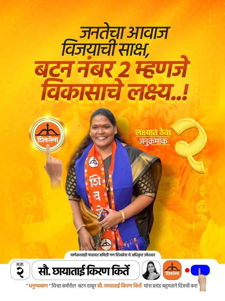 राजकीय : नाणेकरवाडी पंचायत समिती गणात छाया किरण किर्ते यांची 'घोडदौड' सुरु; धनुष्यबाणाचा झंझावात, विरोधक बॅकफूटवर.!